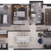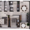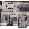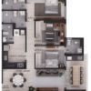 Com 94,52m² possui 2 suítes, 1 quarto, wc social, sala de jantar/estar com varanda gourmet, cozinha e área de serviço com wc.