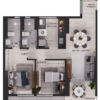 Com 98,95m² possui 2 suítes e 1 quarto reversível com wc social, sala de jantar/estar com varanda gourmet, cozinha e área de serviço com wc.